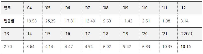 연도별 전국 표준지 공시지가 변동률 현황(%)